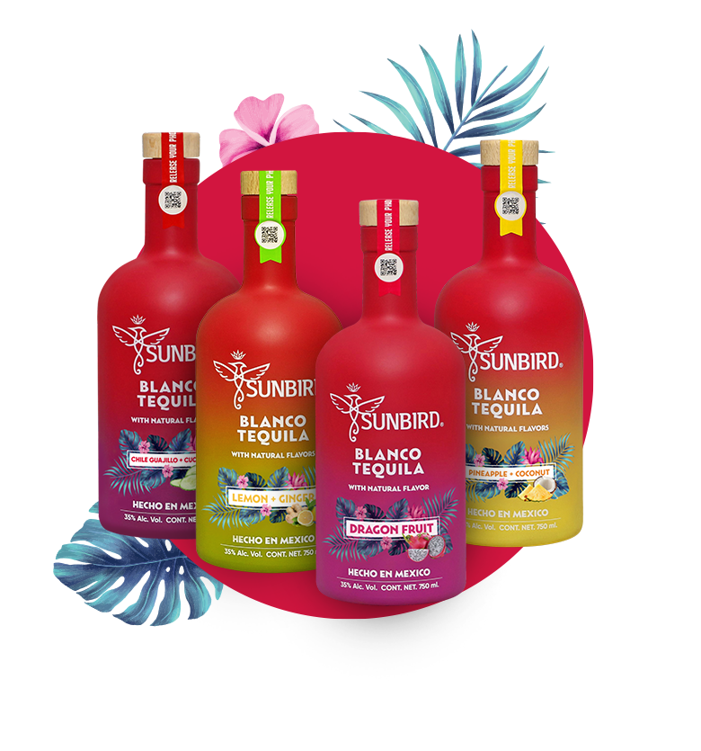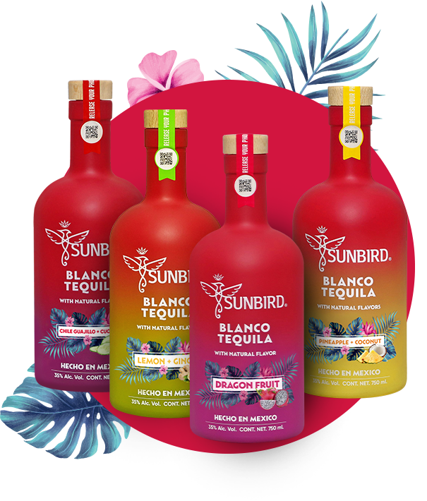 Sunbird tequila is the combination of blanco tequila infused with carefully selected natural flavors from regional Mexican fruit. Combining these fruit and ginger together with the distilled juices from cooked agaves create exquisite smooth drinks that can be taken alone or mixed.